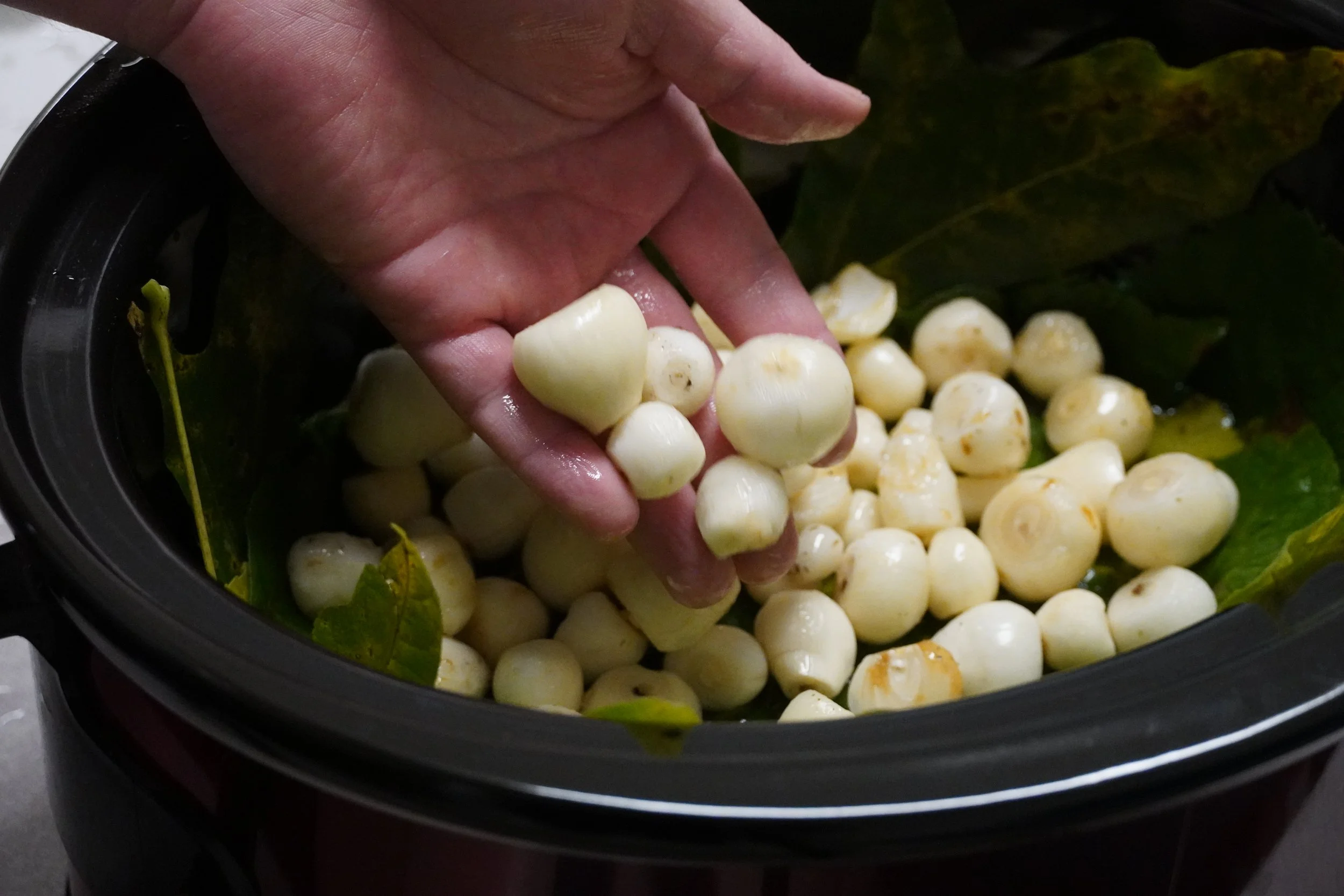 Peeled camas bulbs, waiting to be cooked.